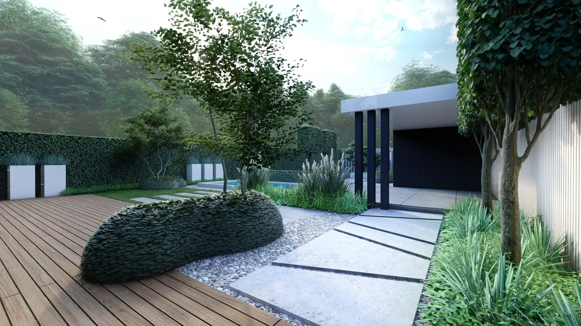 3D tuinontwerp: laat je letterlijk door de nieuwe tuin heen lopen. Elk materiaal, elke plant en elk detail is zichtbaar alsof het al bestaat. Dit geeft zekerheid en inspiratie nog vóór de eerste schop de grond in gaat.